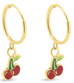 14 Karat Yellow Gold Cherry Hoop Earrings