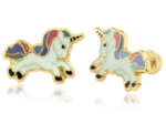 14 Karat Yellow Gold Enamel Color Unicorn Screw Back Earring