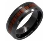 Black Ceramic Beveled-Edge Mahogany Wood Inlay 8 mm Comfort-Fit Band