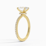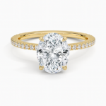 This elegant engagement ring features a glittering hidden halo of diamonds that wraps around the center gem. A petite band complements the gallery for an elegant, chic look (1/3 total carat weight).