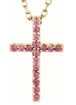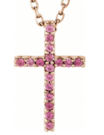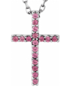 Natural Pink Tourmaline Petite Cross 16″ Necklace