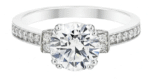Rhodium Plated 925 Sterling Silver 7mm Round Lab Grown Diamond Pave Side Stones Engagement Ring