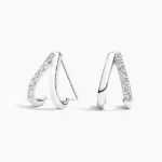 A sparkling row of diamonds adorn each split hoop of precious metal. Stunningly beautiful and effortless, these huggies are perfect for everyday wear (1/10 total carat weight).